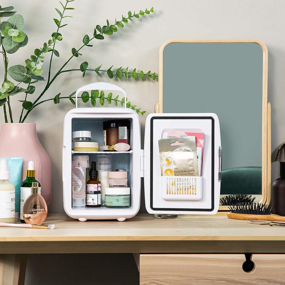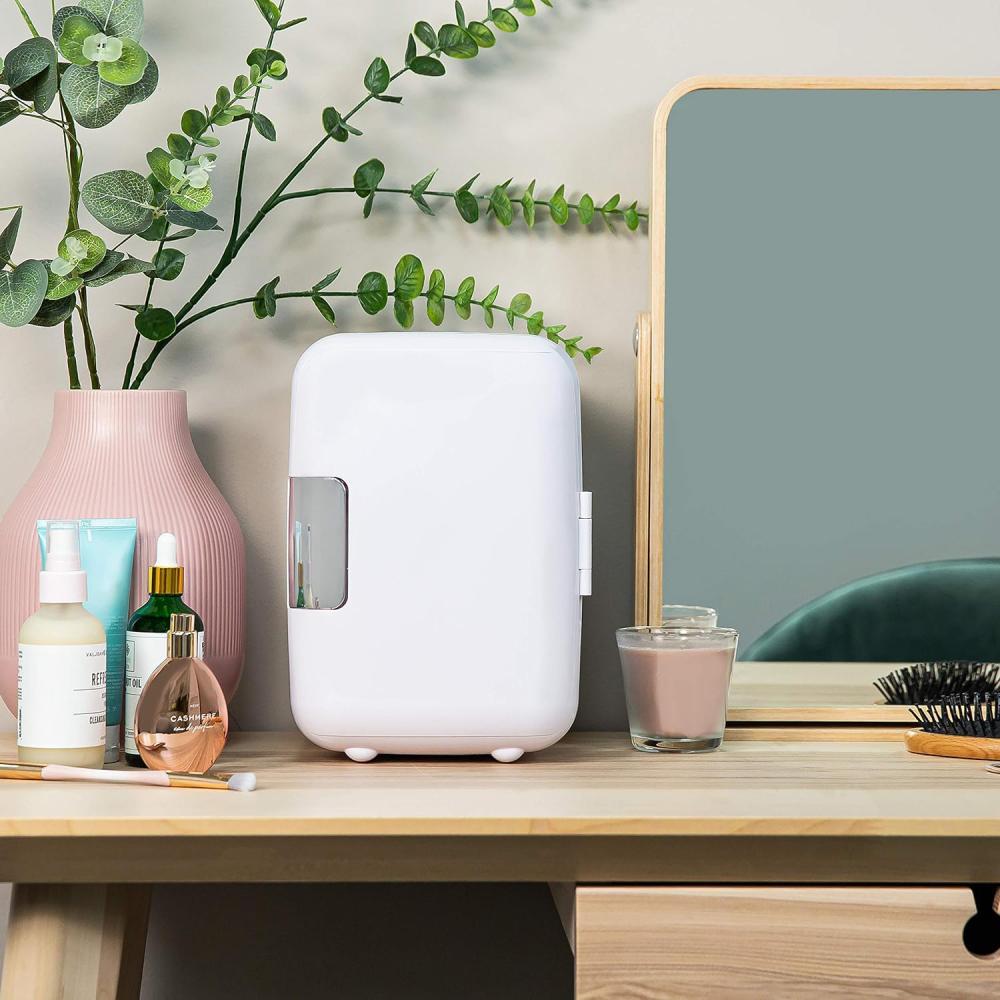 ثلاجة صغيرة الحجم سعة 4 لتر من دينكس بتصميم محمول للمشروبات ومستحضرات التجميل والمكياج والعناية بالبشرة لون ابيض للمنزل والسيارة DX2057