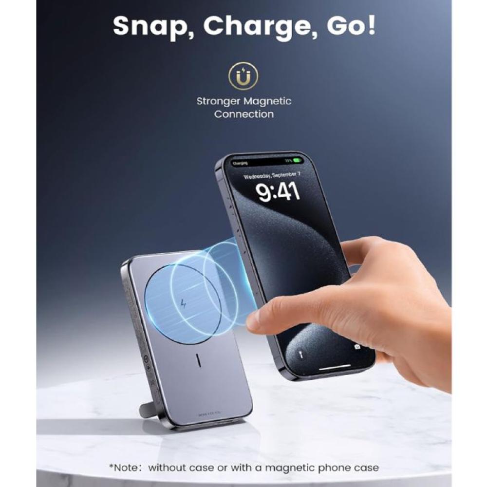 اكتشف الشاحن المتنقل يوجرين اللاسلكي المغناطيسي قابل للطي بقوة 10000mAh ومزود بحامل الهاتف المحمول و MagSafe.