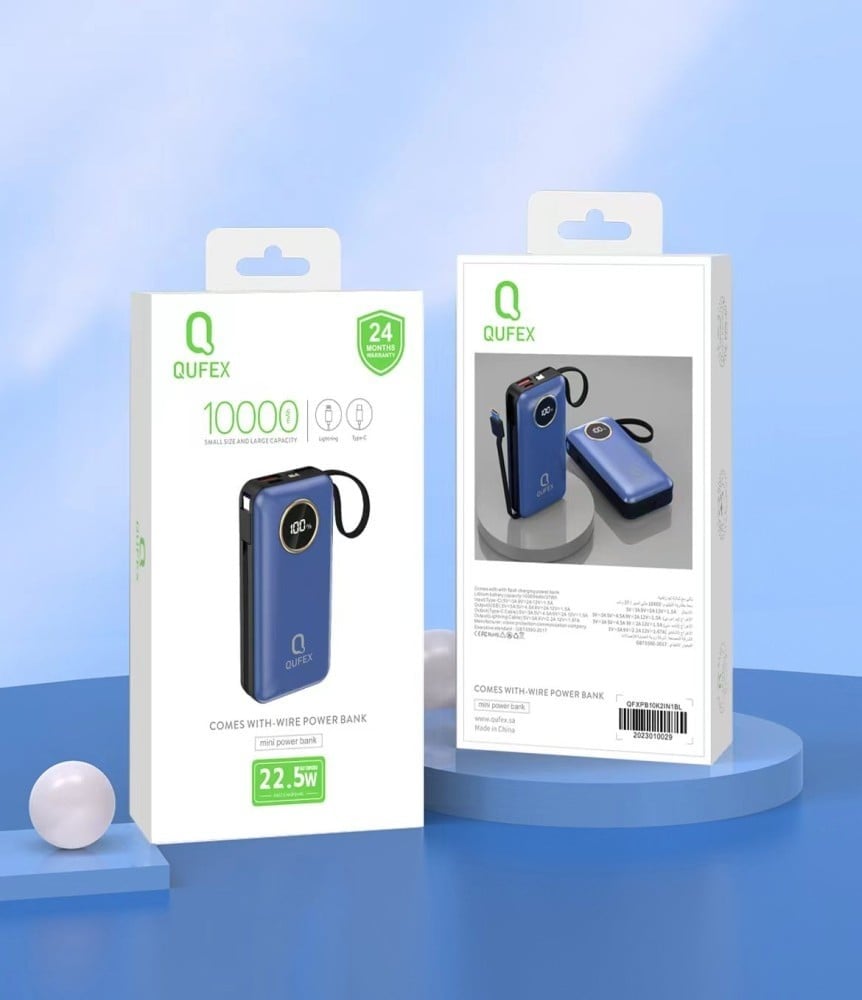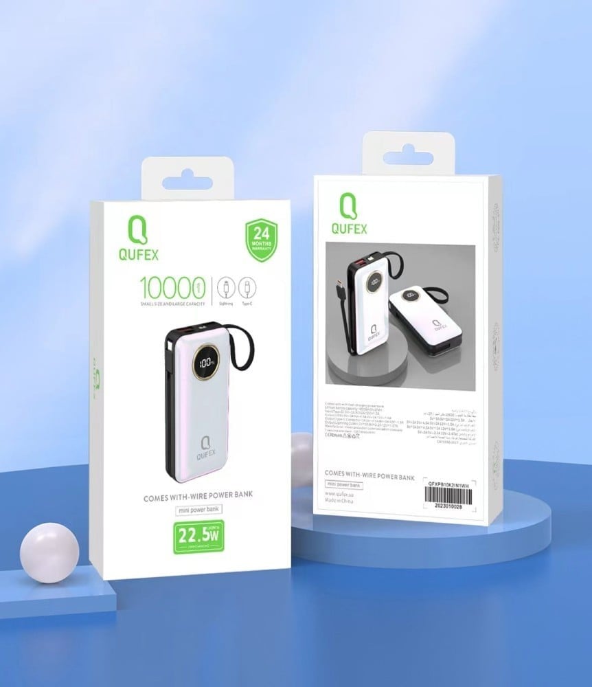 • الوسوم: QUFEX, كيوفكس, بطارية متنقلة, شواحن, شاحن متنقل, بور بانك, شواحن متنقلة, شاحن متنقل PD مع كيبل تايب سي آيفون مدمج