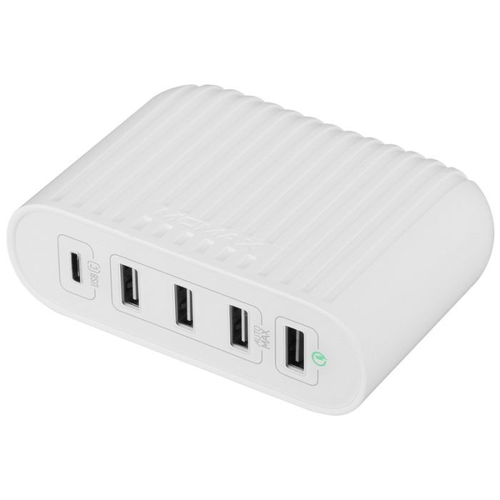 مزود بمنفذ USB-C و 4 منافذ USB تمنحك بحد أقصى 40 واط من الطاقة ، مما يتيح شحن 5 أجهزة في وقت واحد