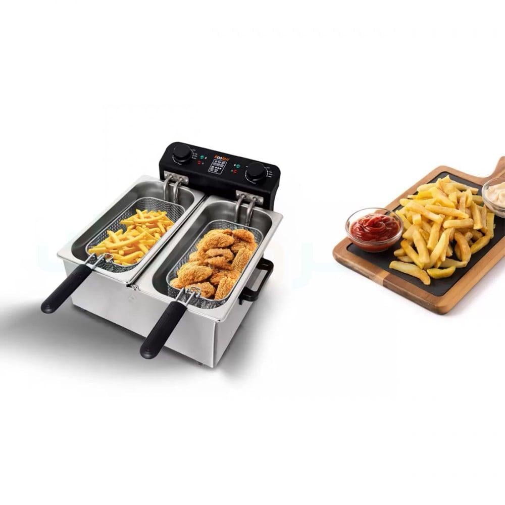 كولين قلاية زيت عميقة ستانلس ستيل سلة مزدوجة سعة 6 لتر ، 2800 واط