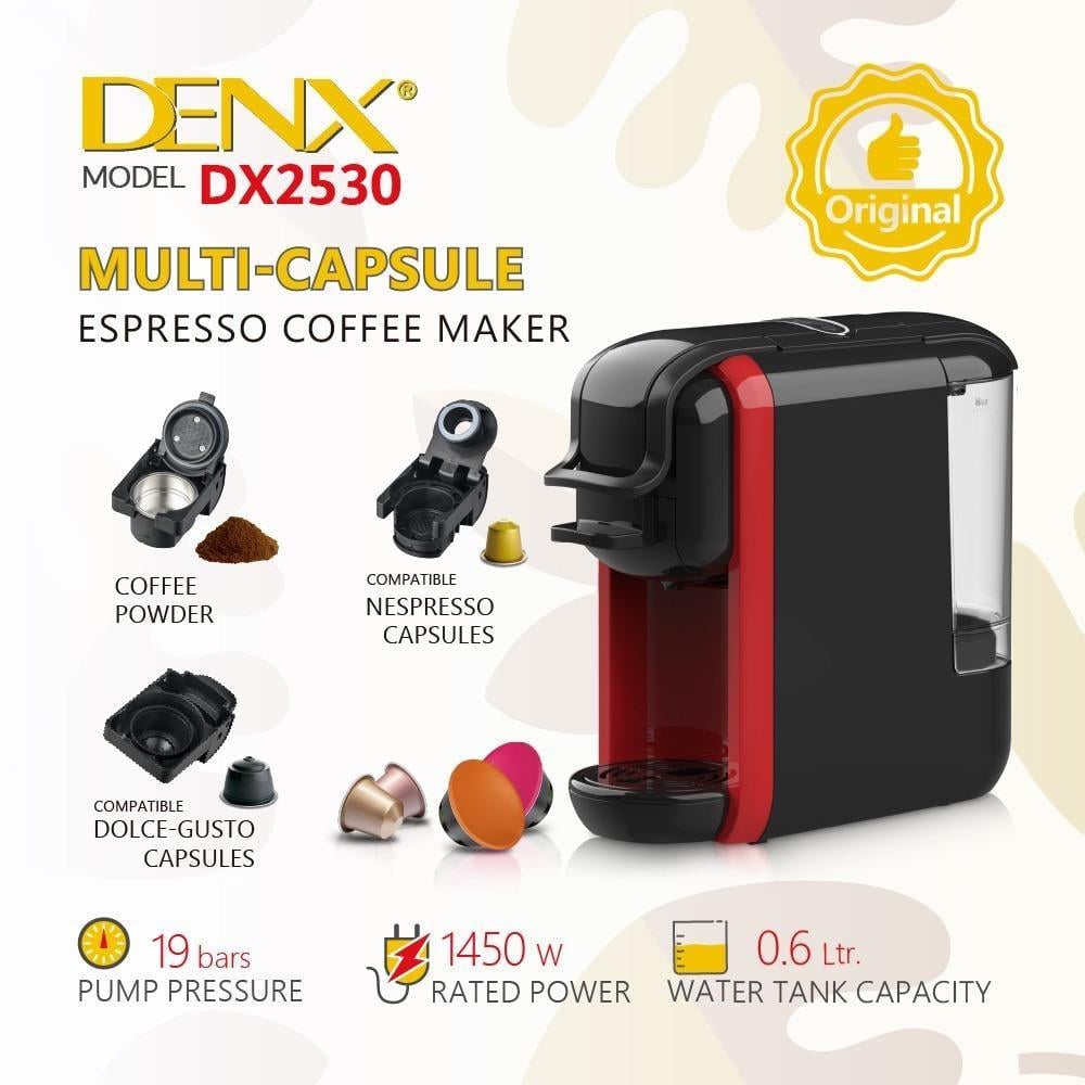 ماكينة تحضير قهوة اسبريسو متعددة الوظائف لكبسولات نسبريسو وكبسولات دولتشي جوستو ومسحوق القهوة | صانعة القهوة 3 في 1 من دينكس DX2030
