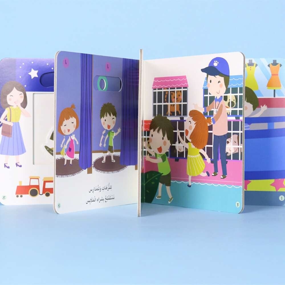 - أحداث يومية بسيطة بطريقة عرض إبداعية حيث الرسومات الجذابة والقطع المتحركة ليتفاعل الطفل ويلعب أثناء القراءة .