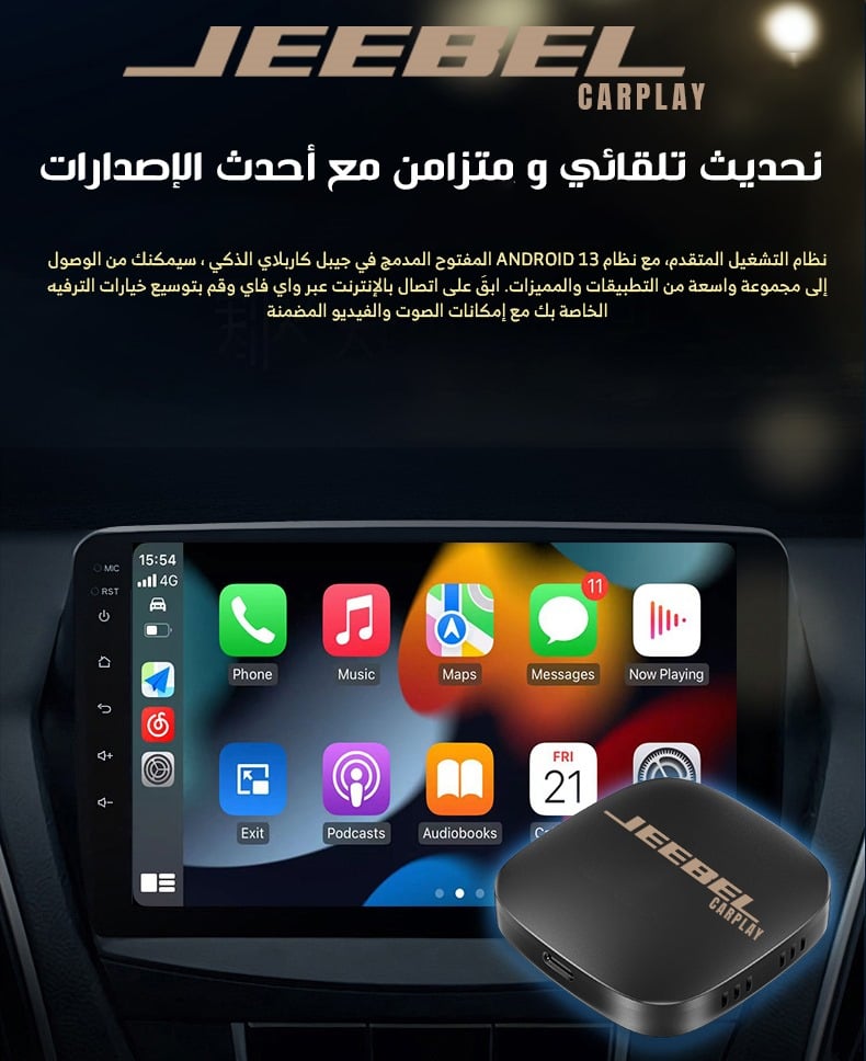 • التوافق الواسع: “كاربلاي JEEBEL” متوافق مع مجموعة واسعة من السيارات …